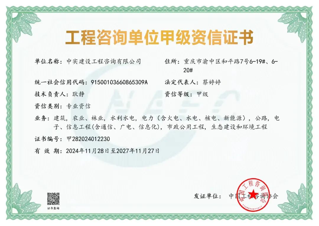 榮耀再續 賦能增效|中實咨詢獲批工程咨詢單位甲級資信